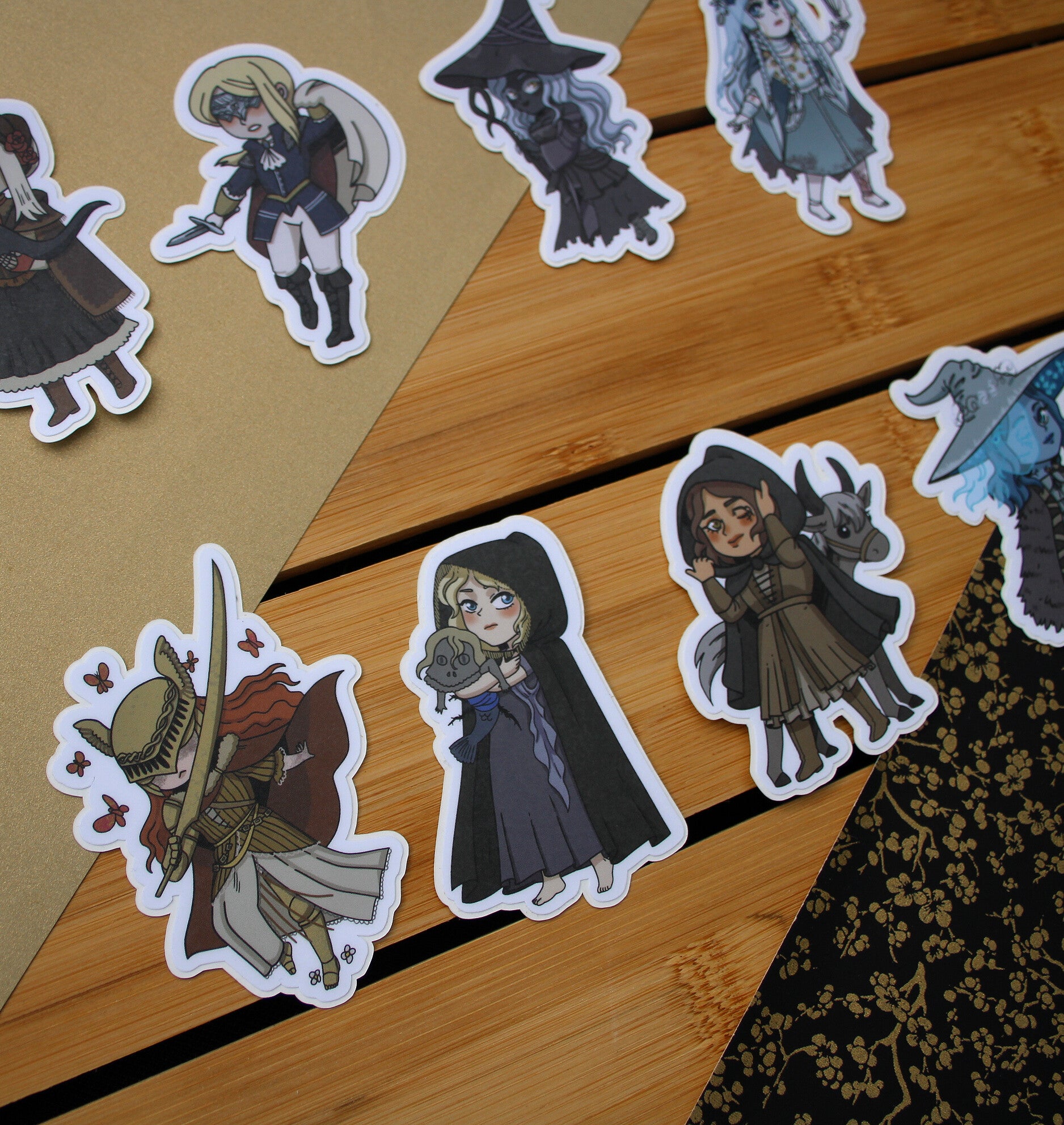 Cute vinyl stickers of your favourite girls from the Soulsborne Fromsoft games. (More will be added as time goes on)