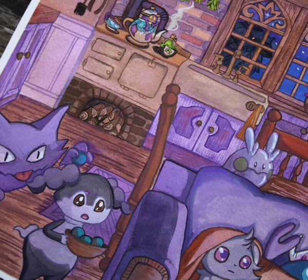 A painting slightly larger than A4, made with gouache paints. It is unframed