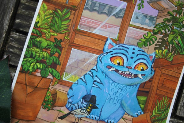 A painting slightly larger than A4, made with gouache paints. It is unframed